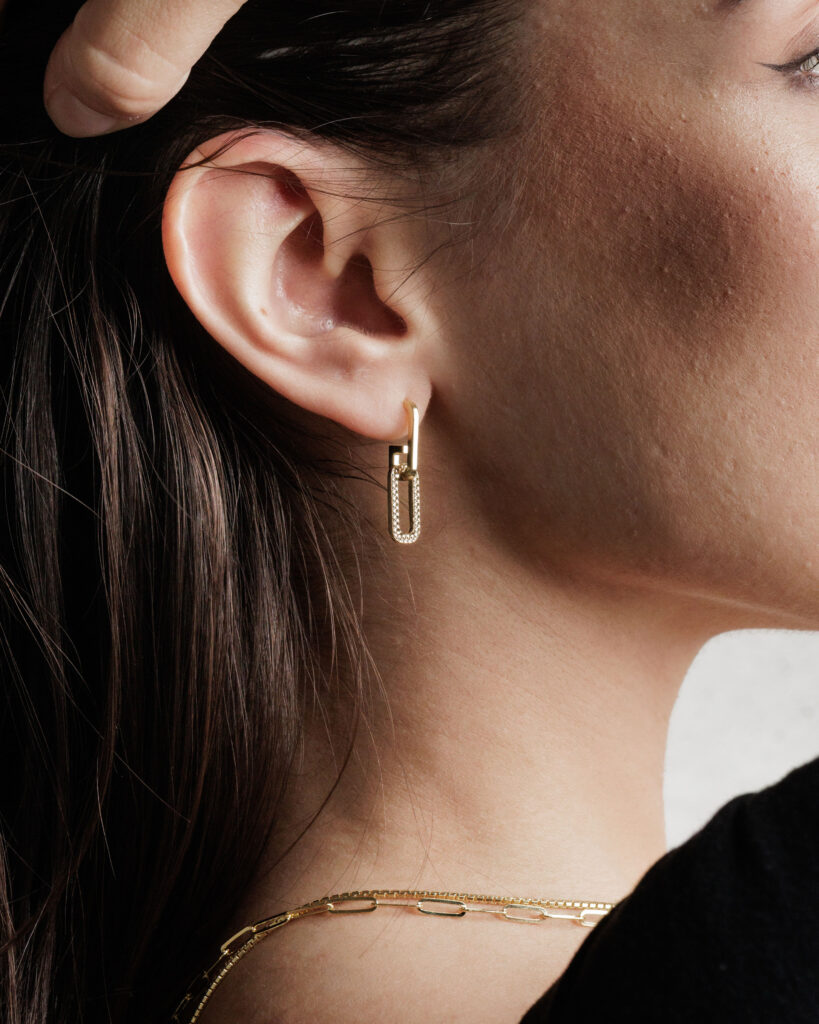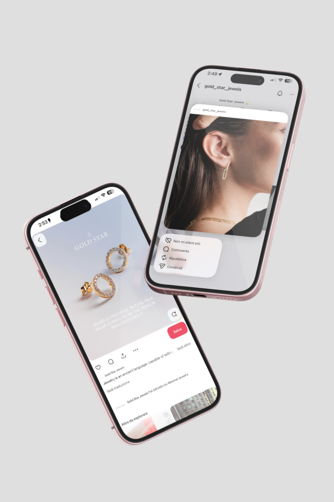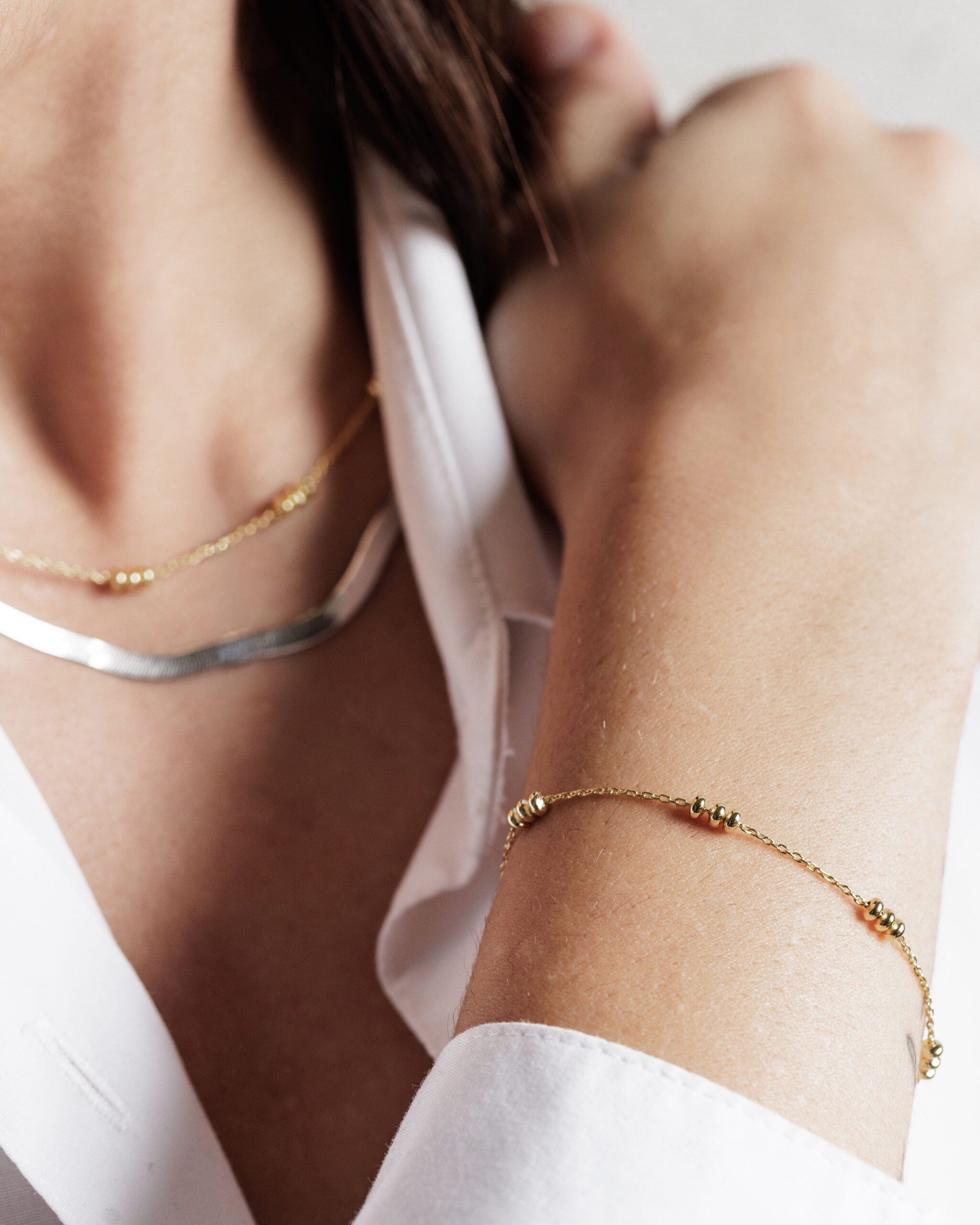 Gli still life valorizzano le finiture, le texture e la materia, raccontando il gioiello come oggetto di qualità. Gli scatti indossati, invece, inseriscono il prodotto in un contesto reale e quotidiano, rafforzando l’idea di “everyday jewelry” e aiutando l’utente a immaginarsi mentre lo indossa.