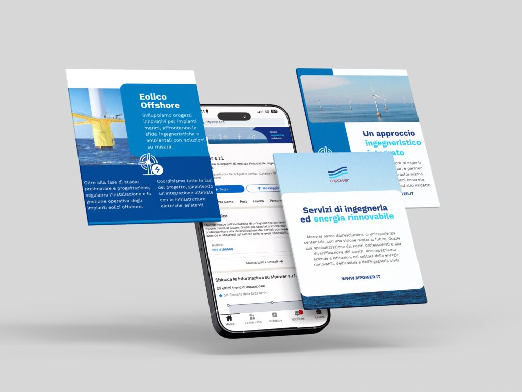 A supporto della strategia LinkedIn, ci occupiamo inoltre della creazione di contenuti su misura, sviluppando testi e materiali visivi che raccontano in modo efficace le soluzioni offerte da Mpower. Questo approccio assicura una comunicazione coerente e coinvolgente, rafforzando la brand identity e favorendo l’engagement con il pubblico di riferimento.